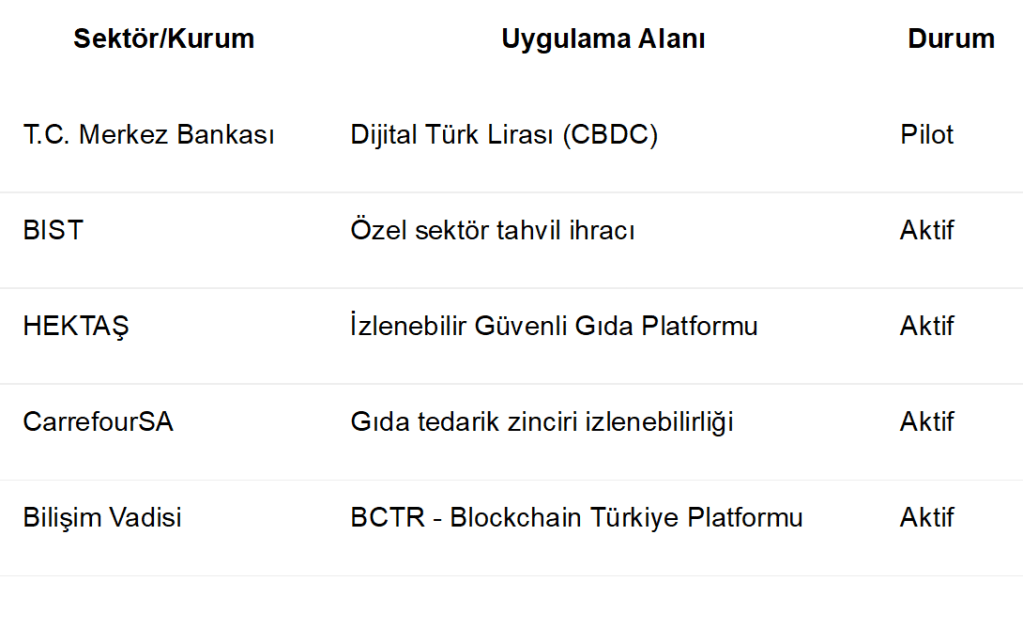 Türkiye’de Blockchain Kullanan Bazı Kurum ve Sektörler